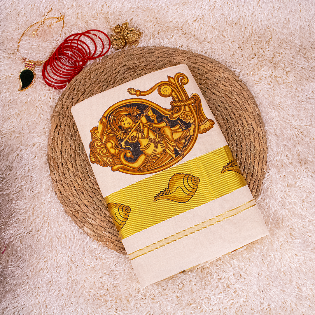 Krishna Mural Printed Saree - Onam Saree S01-06